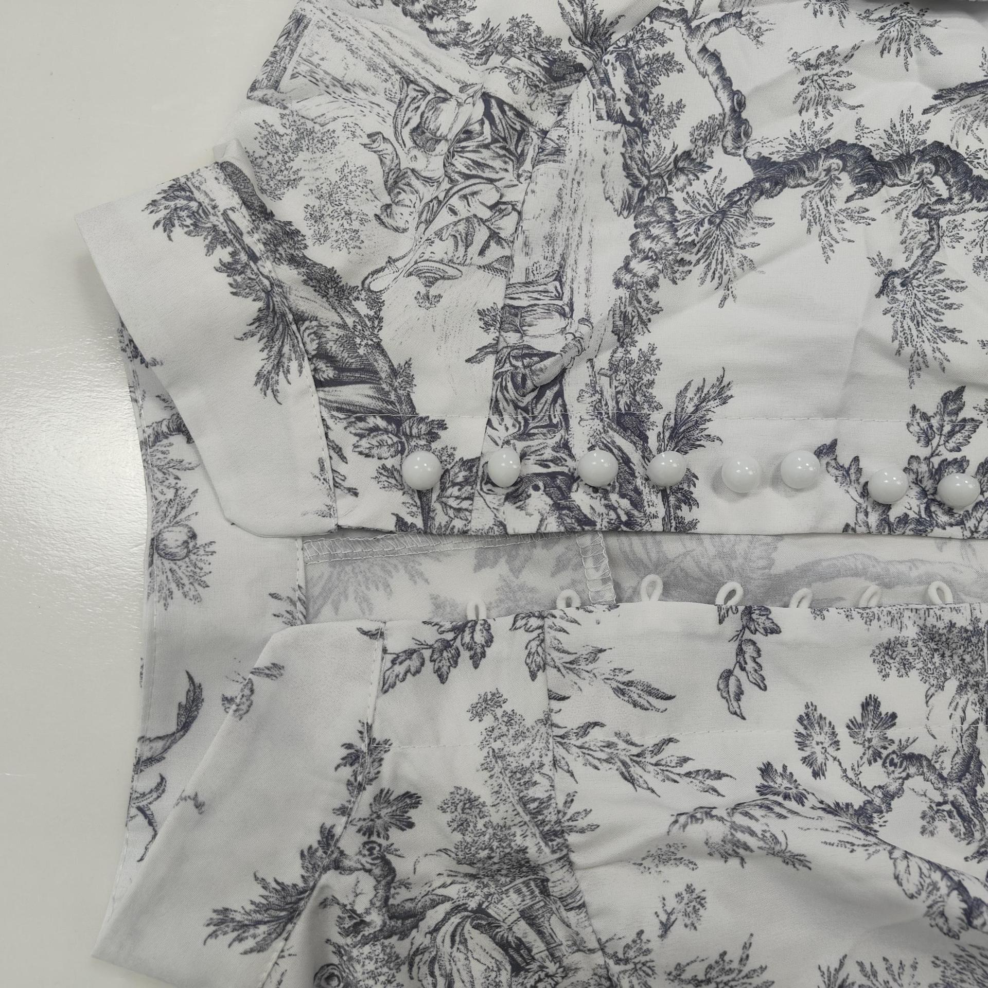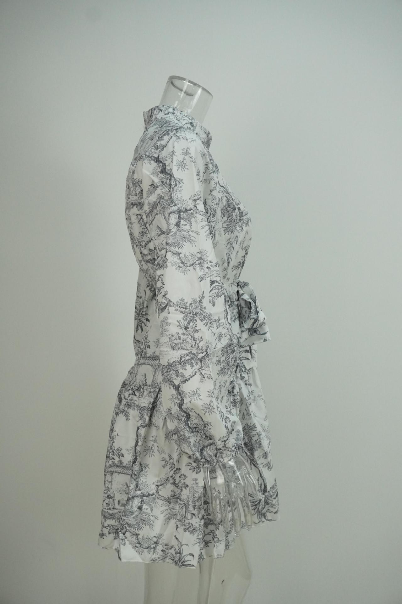 elegant and fashionable long-sleeved lace-up national style printed dress