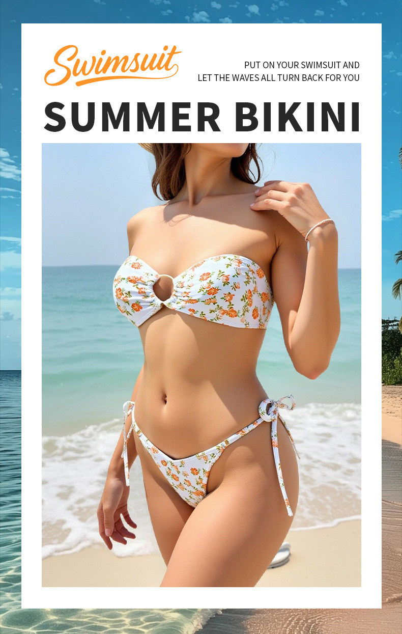 Two-piece floral sexy bikini seaside two-piece swimsuit
